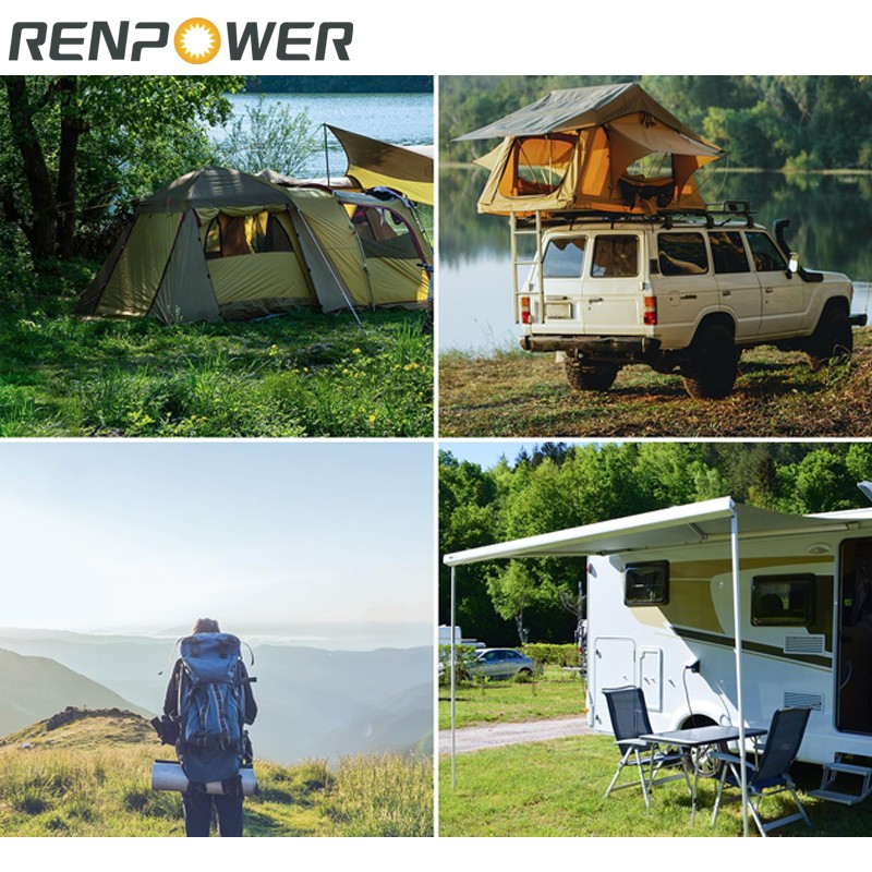 1.100W bærbart sammenleggbar solteppe er laget av HPBC produserer mer energi enn solcellepaneler laget av andre elementer. HPBC gir høy konverteringseffektivitet opp til 25%, og 100W -utgangen kan dekke de fleste utendørs ladingsbehov.