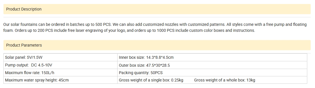 Rediger fabrikk Direkte forsyning av solvannspumpefontenen, bassengfontenen, Rocky Fountain, Fish Tank Water Circulation